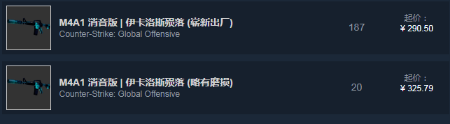 M4A4是CS:GO的主战枪,而波塞冬尽管不及二西莫夫热门,但得益于是只有大行动期间有通行证才有机会掉落的保密级皮肤,再加上波塞冬是美杜莎的合成素材,所以价格非常高。最便宜的也要900多元,略磨和久经基本都用于合成美杜莎,所以价格差不多。